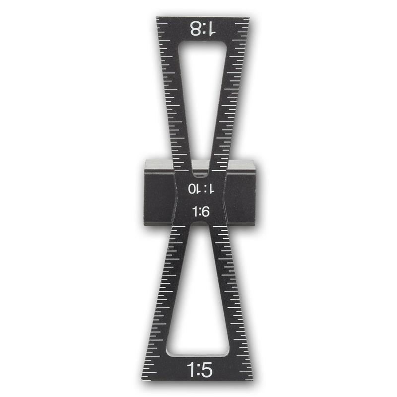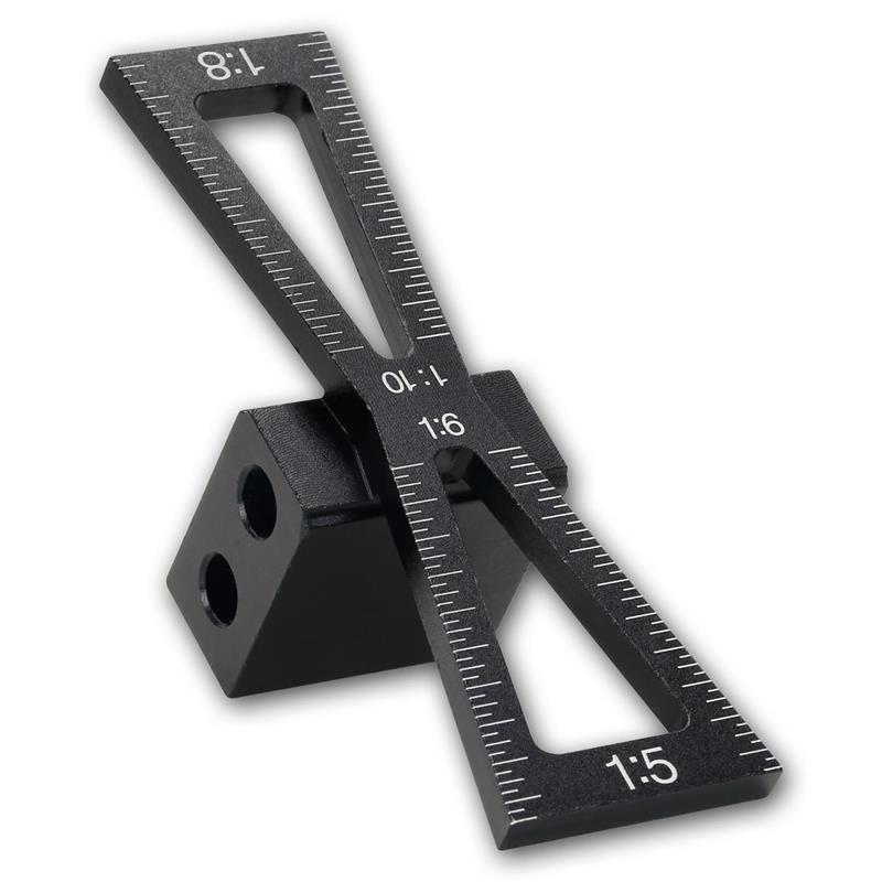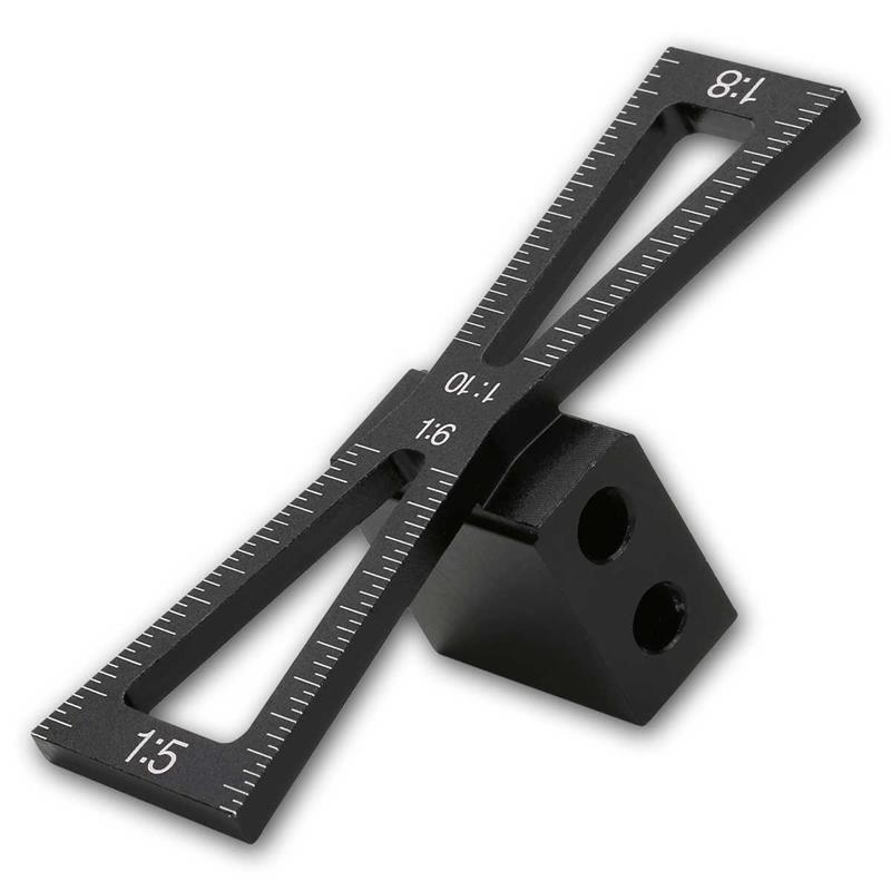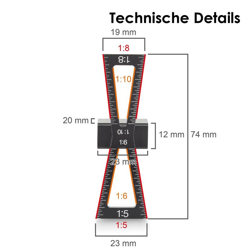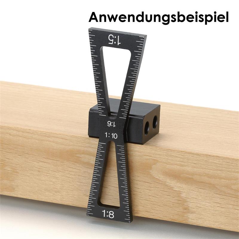 Die Markierungslehre für Schwalbenschwanzverbindungen bietet eine erstklassige Lösung für präzise und effiziente Holzbearbeitung. Die Lehre bietet vier verschiedene Größenverhältnisse (1:5, 1:6, 1:8 und 1:10), um eine Vielzahl von Anforderungen in der Holzbearbeitung zu erfüllen. Diese Schwalbenschwanz-Schablone ist speziell für die Anwendung auf Weichholz, Hartholz und anderen Hölzern optimiert. Ihr Design ermöglicht eine präzise Markierung von Schwalbenschwanzverbindungen, sowohl für Anfänger als auch für erfahrene Holzbearbeiter. Die Lehre macht das Auslegen der Winkel einfach und zuverlässig, wodurch die Qualität der Verbindungen erheblich verbessert wird. Die eloxierte Oberfläche des Aluminiums sorgt nicht nur für eine lange Lebensdauer, sondern verleiht der Markierungslehre auch eine professionelle Ästhetik. Die weiße Beschriftung erleichtert die Lesbarkeit und trägt dazu bei, dass die Markierungen klar und präzise sind. Diese Markierungslehre ist ein unverzichtbares Werkzeug für Holzarbeiter, die nach Genauigkeit und Effizienz in ihren Projekten streben.