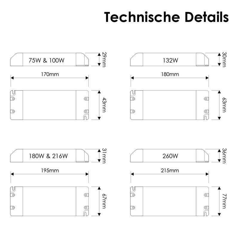 LED Transformatoren "SLIM", verschiedene Größen, Ausgangsleistungen: 75W bis 260W, nicht dimmbar, IP20