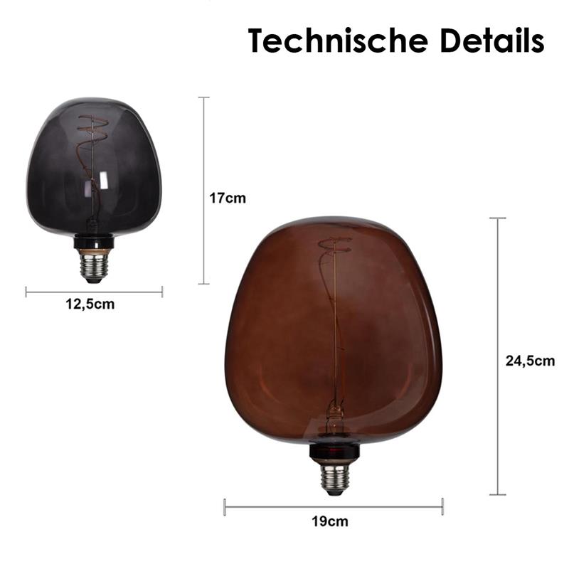 - 1x E27 Design Birne APPLE Filament, braunes Glas, 190x245mm (ØxH) oder