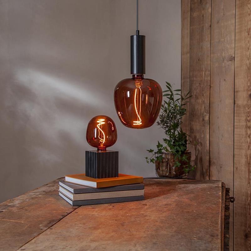 - 1x E27 Design Birne APPLE Filament, braunes Glas, 125x170mm (ØxH) oder