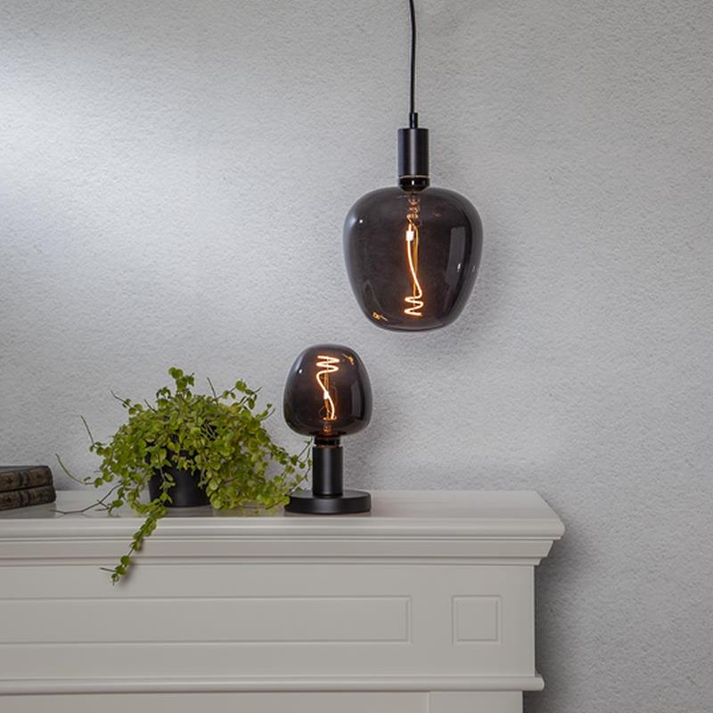 - 1x E27 Design Birne APPLE Filament, schwarzes Glas, 190x245mm (ØxH) oder