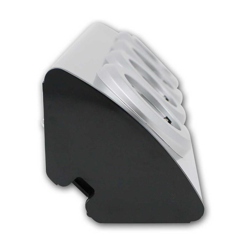 Der Vierfach-Steckdosenblock mit Edelstahl-Gehäuse eignet sich perfekt, um fehlende Steckdosen in der Küche, im Büro oder in der Werkstatt nachzurüsten. Er bietet flexible Montagemöglichkeiten, da er sowohl horizontal als auch vertikal angebracht werden kann und einfach zu installieren ist. Der Metall-Innenrahmen sorgt für zusätzliche Stabilität, während der 45°-Winkel der Steckdosen das Einstecken von Schutzkontaktsteckern erleichtert. Die vier Steckplätze sind durch silberne Kunststoffringe voneinander abgesetzt, wodurch sich der Steckdosenblock optisch ansprechend in Küchenarbeitsplatten oder Schreibtische einfügt.