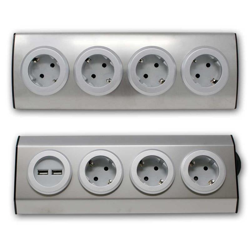 Im Lieferumfang sind verschiedene Varianten erhältlich: der Vierfach-Steckdosenblock ohne Anschlusskabel, mit einem 15cm Anschlusskabel, eine dreifache Steckdose mit USB-Anschluss und 15cm Anschlusskabel oder eine vierfache Steckdose mit einem 1,5m Anschlusskabel.
