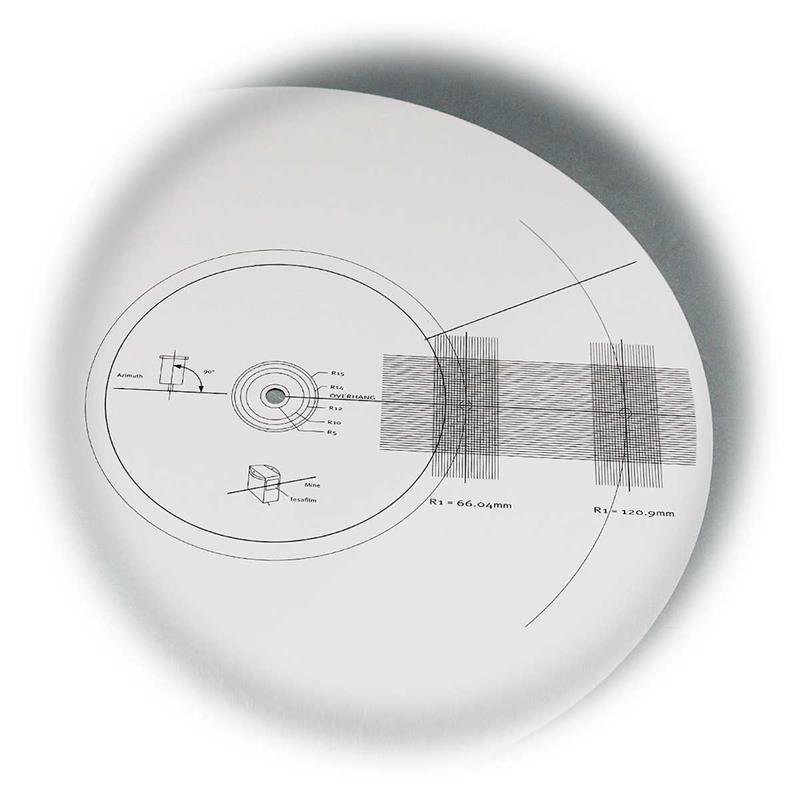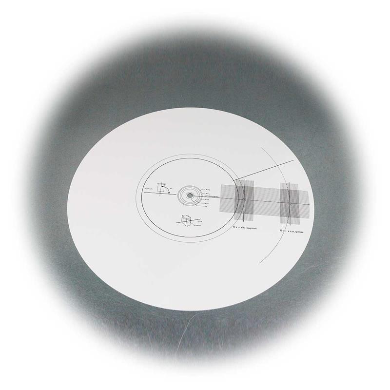 Die Tonabnehmer-Einstelllehre mit integrierter Stroboskop-Scheibe ist ein unverzichtbares Werkzeug für präzise Einstellungen an Plattenspielern. Gefertigt aus hochwertigem Gemini-Karton (doppelt gestrichen und laminiert) bietet die Scheibe mit einem Durchmesser von 300mm und einer Stärke von nur 1mm eine stabile und langlebige Oberfläche. Das Mittelloch mit 7mm Durchmesser ist auf die gängigen Plattentellerstandards abgestimmt und gewährleistet eine einfache und sichere Montage. Die Stroboskop-Scheibe verfügt über Markierungen, die bei verschiedenen Plattengeschwindigkeiten von 33 1/3, 45 und 78 Umdrehungen pro Minute (rpm) für 50Hz und 60Hz Netzfrequenzen eine genaue Überprüfung der Drehzahl ermöglichen. Die typische Anwendung besteht darin, die Scheibe auf den Plattenteller zu legen und unter Lichtquelle zu beobachten: Bei korrekter Geschwindigkeit erscheinen die Markierungen statisch, andernfalls bewegen sie sich sichtbar. Dadurch lässt sich die Drehzahl des Plattentellers exakt justieren, was für ein optimales Klangbild und die Vermeidung von Tonhöhenverzerrungen essenziell ist.