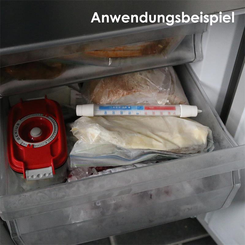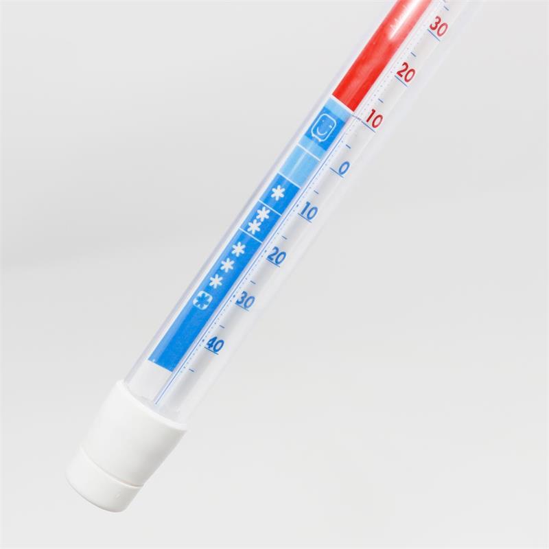 analoges Kühl-Gefrierschrank-Thermometer, Messbereich -45 bis +45°C, mit Kühlzonen-Anzeige, Maße ca. 19x210mm (ØxL), Haken zum Aufhängen