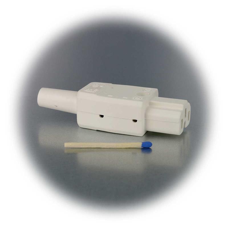 Ersatzstecker für Heißgeräte bis 230V/10A, hitzebeständiger Thermoplast, mit Knickschutzhülle und Schutzkontakten, Betriebstemperatur von bis 155°C