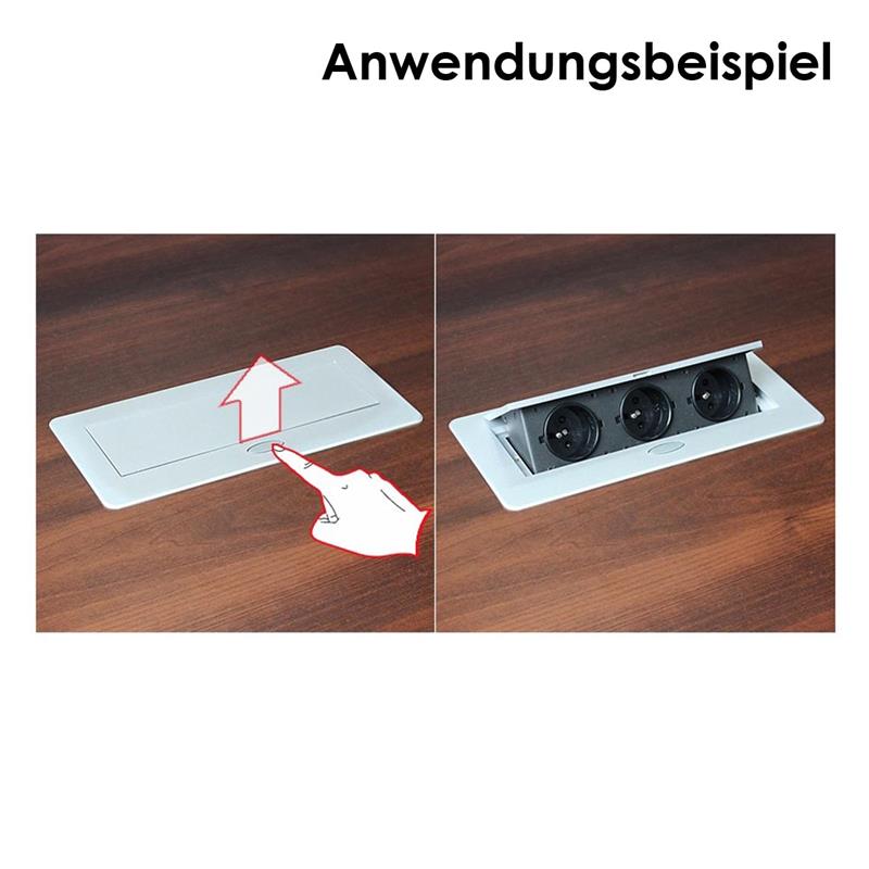 - automatisches Ausklappen der Steckdosenleiste über Druckschalter