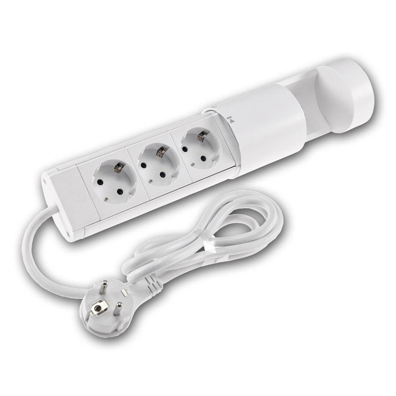 Für maximalen Komfort sind die 230V Steckdosen um 45° gedreht und die gesamte Steckdosensäule lässt sich bis zu 350° rotieren. So finden auch größere Netzteile problemlos Platz, und die Anschlüsse können optimal an jede Einbausituation angepasst werden. Ein erhöhter Berührungsschutz sorgt zusätzlich für Sicherheit im täglichen Gebrauch. Der integrierte Touch-Hauptschalter ermöglicht das gezielte Ein- und Ausschalten der Steckdosen, während die USB-Ports dauerhaft aktiv bleiben – ideal, um Geräte abzuschalten und gleichzeitig Smartphones weiterzuladen. Das 3m lange Anschlusskabel mit Schutzkontakt-Stecker der Platzierung, selbst wenn keine Wandsteckdose in unmittelbarer Nähe ist. Erhältlich in schwarz oder weiß, fügt sich die Tischsteckdose "CT-KS 3" harmonisch in moderne, minimalistische oder technische Umgebungen ein – dezent im Büro oder elegant in der Küche. Gefertigt aus robustem Kunststoff, ausgelegt für den trockenen Innenbereich und mit einer Belastbarkeit bis 3680W, ist die Steckdosensäule eine platzsparende, leistungsstarke und durchdachte Lösung für strukturierte und aufgeräumte Arbeitsflächen.