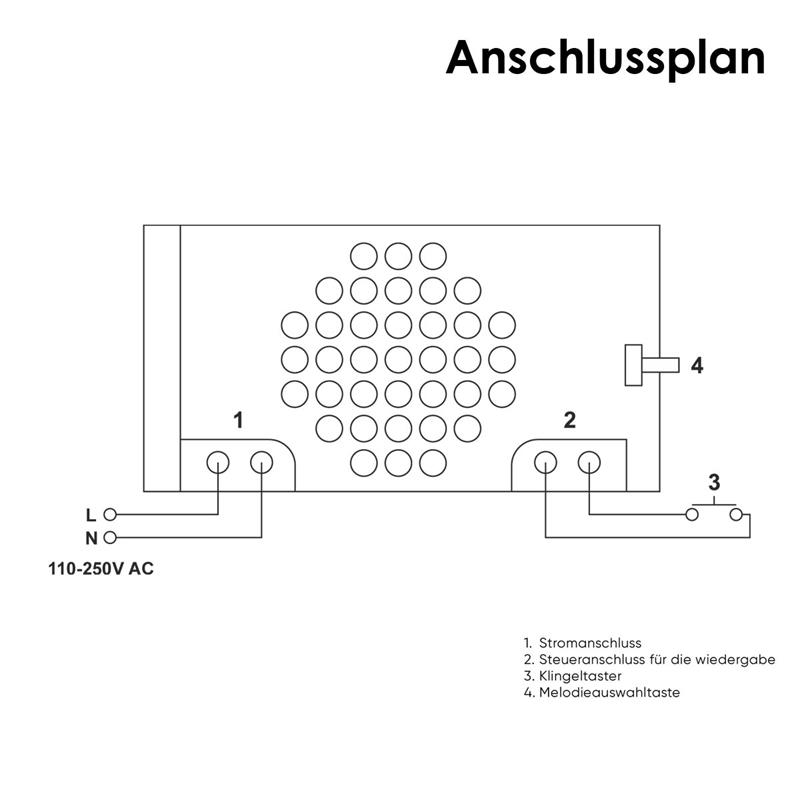 runde Türklingel mit 38 auswählbare Melodien, Lautstärke von 80dB, Steuerung ohne Netzspannung am Klingeltaster, kompatibel mit 230V Klingelanlagen und Zahlenschlössern