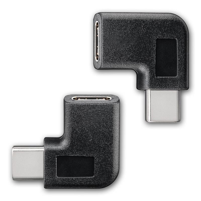 - 1x Adapter USB-C auf USB-C 90°, schwarz, zur Seite oder