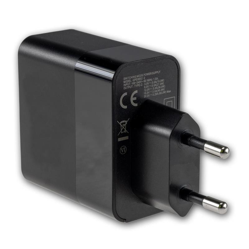 USB Stecker-Netzteil mit Eurostecker, 1x USB Steckplatz Typ C, Ausgangsleistung: max. 65W, USB-Ladegerät mit automatischer Abschaltung