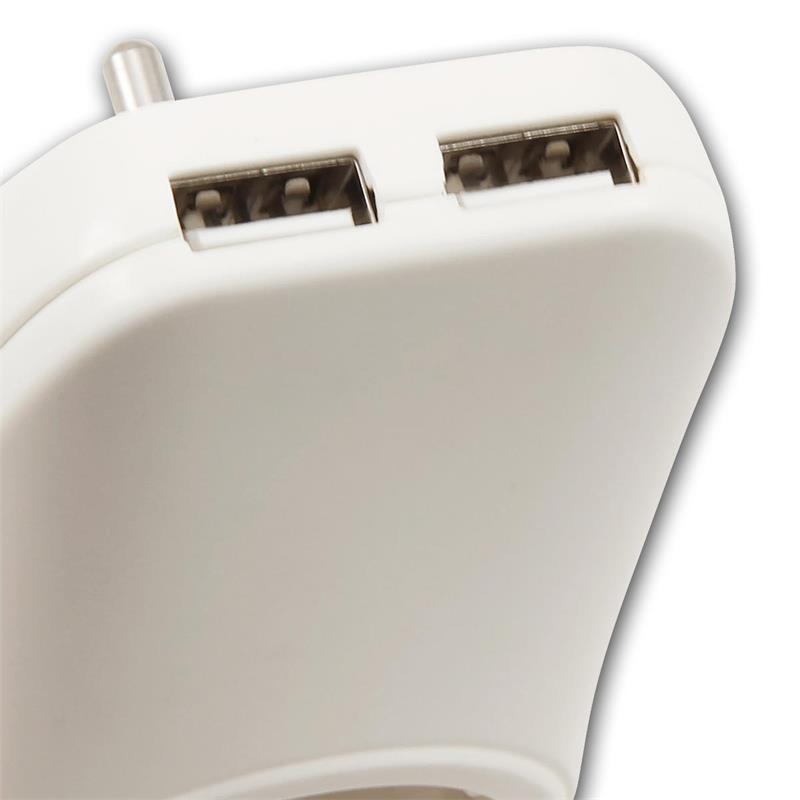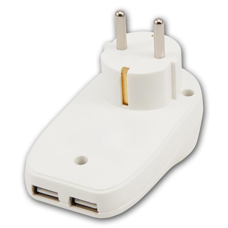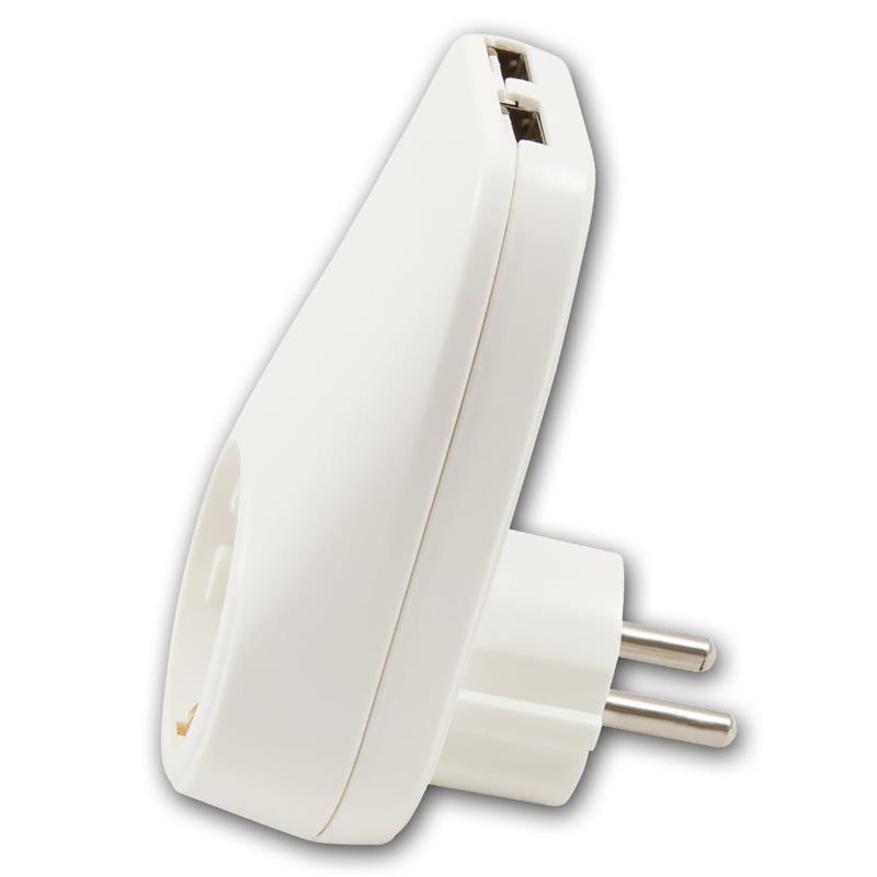 Zwischenstecker zum Aufladen von bis zu 2 USB-A Geräten, Betrieb nur an 230V / 50Hz, Leistung: max. 3600W, IP20