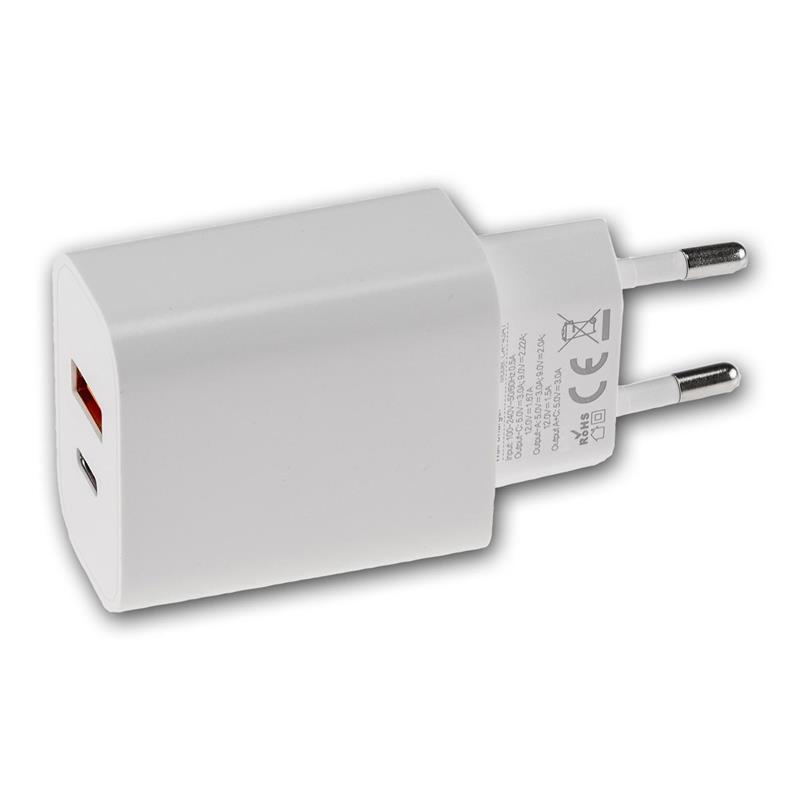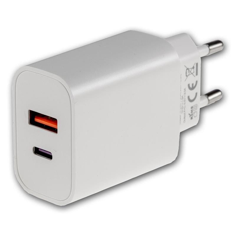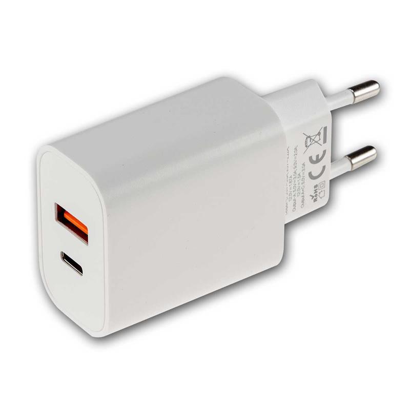 USB-Steckdosenadapter mit Schnell-Ladefunktion, 1x USB Typ A & 1x USB Typ C, Ausgang 5V/3A, Ausgangsleistung 20W