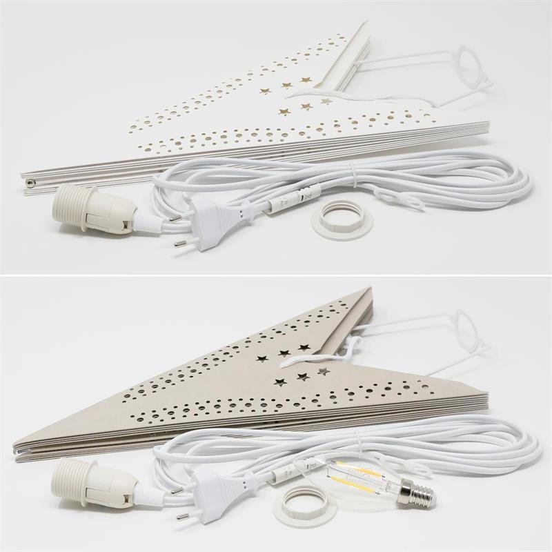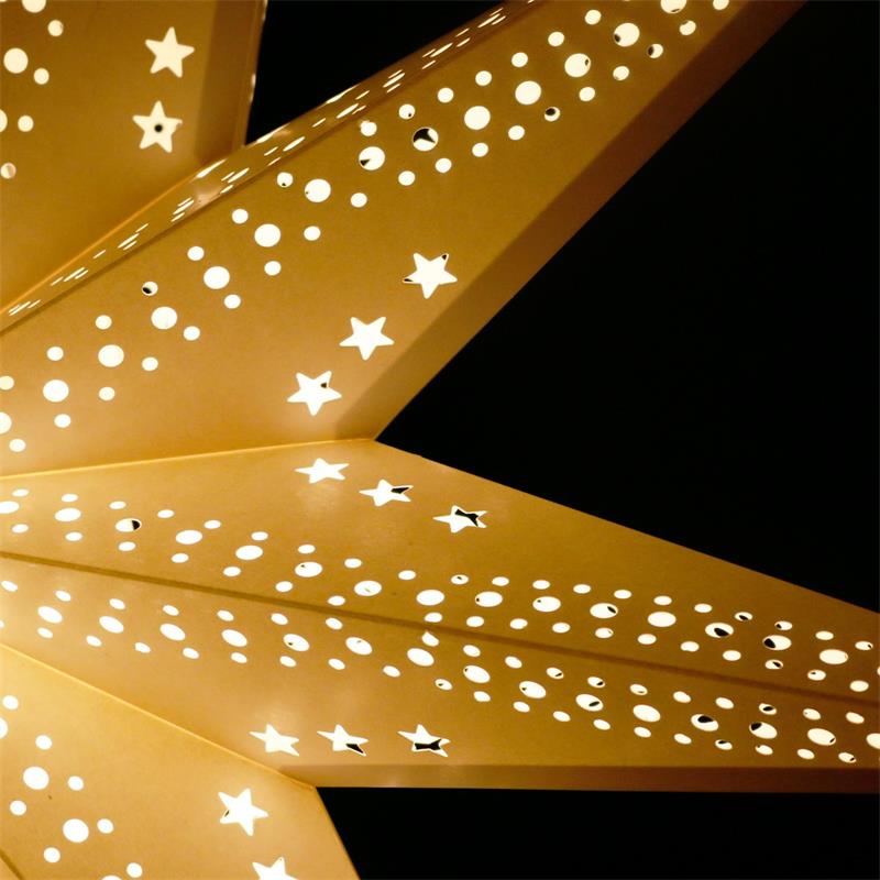 faltbarer 8-zackiger Papierstern "HEAVEN" in creme/braun, Sterndurchmesser 70cm, inkl. 3,5m Stromkabel mit E14 Fassung, mit und ohne Beleuchtung