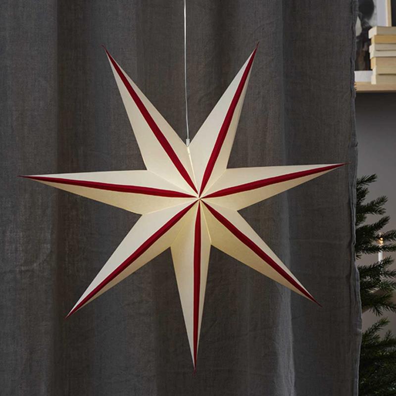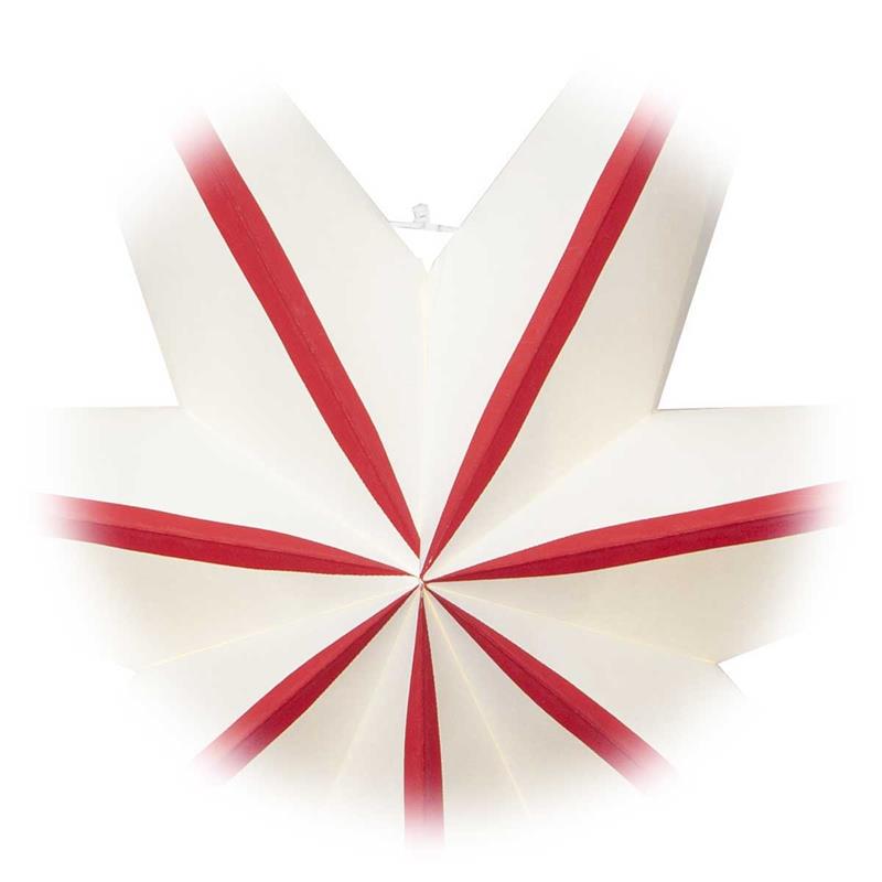 Verleihen Sie Ihrem Zuhause in der Weihnachtszeit einen festlichen Glanz mit dem 7-zackigen Papierstern „Randi“. Mit einem Durchmesser von ca. 75cm und einer Breite von 19cm wird dieser dekorative Stern zum stilvollen Highlight in jedem Raum. Hergestellt aus hochwertigem Papier, ist der Stern in einer klassischen weißen Grundfarbe gestaltet und mit eleganten Zierstreifen in rot erhältlich. Er eignet sich perfekt für den Innenbereich und kann sowohl als einfacher Deko-Stern ohne Beleuchtung als auch mit stimmungsvoller LED Beleuchtung genutzt werden.