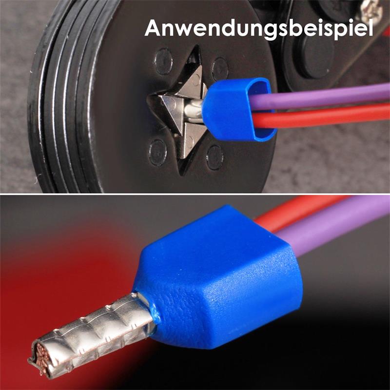 - 15x Duo-Aderendhülsen, blau, Querschnitt 2x 2,5mm²