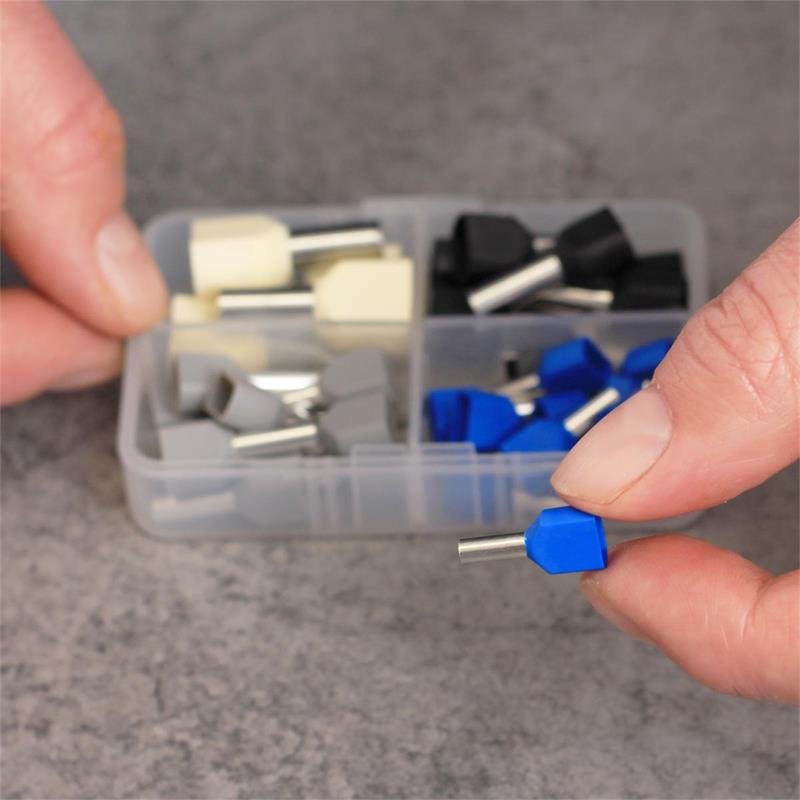 Duo-Aderendhülsen-Sortiment, 36-teilig, isolierte Schäfte in blau, grau, schwarz, elfenbein, für Kabelquerschnitte von 0,75-2,5mm², zum verpressen/vercrimpen
