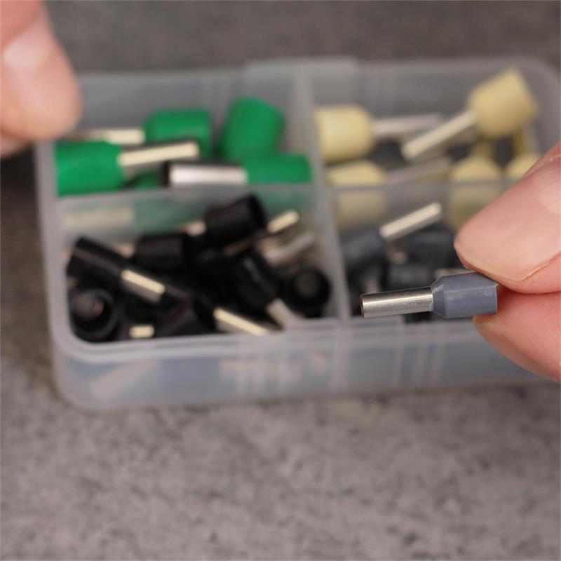 Aderendhülsen-Sortiment, 45-teilig, isolierte Schäfte in grau, schwarz, elfenbein, grün, für Kabelquerschnitte von 4-16mm², zum verpressen/vercrimpen