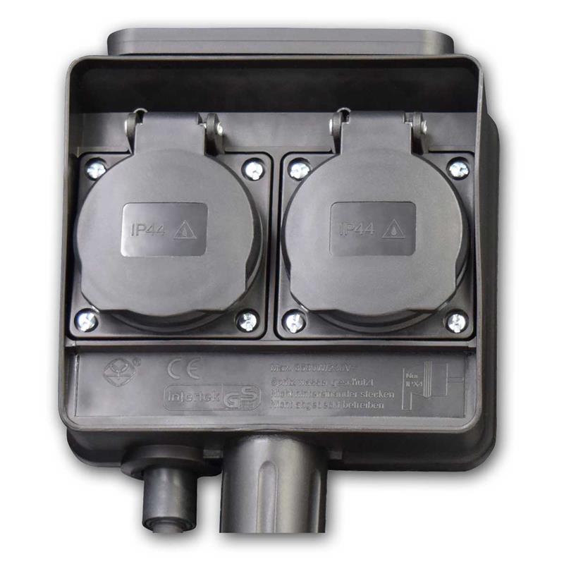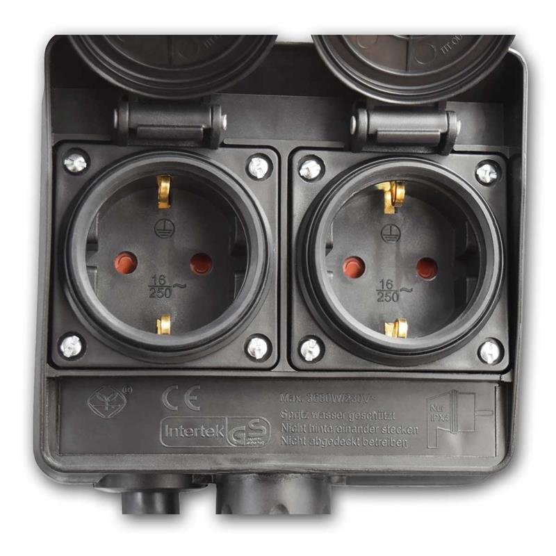 - Schutzklasse Steckdose: IP44, spritzwassergeschützt