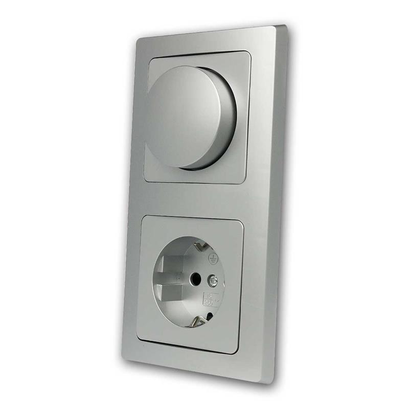 Kombi Dimmer mit Steckdose, Schutzkontakt Steckdose, silber, kompatibel mit Komponenten der "DELPHI " Serie