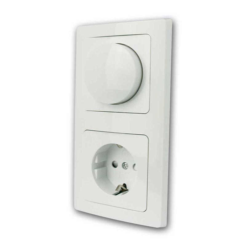 Kombi Dimmer mit Steckdose, weiß, kompatibel mit Komponenten der "DELPHI " Serie, Schutzkontakt Steckdose
