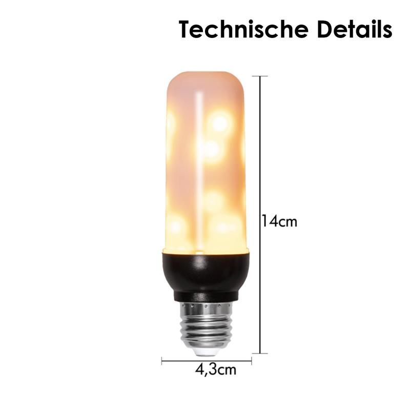 Lichtstrom: 80lm, Leistung: 3W, Lebensdauer: ca. 15.000h, simuliert realistisches Flammenflackern, Schwerkraftsensor