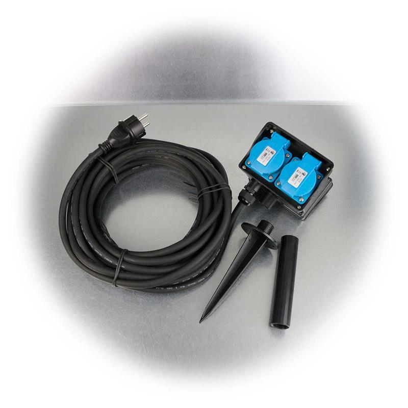 - 1x Gartensteckdose 2-fach inkl.10m Zuleitung und Erdspieß