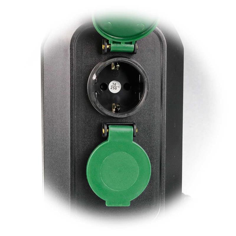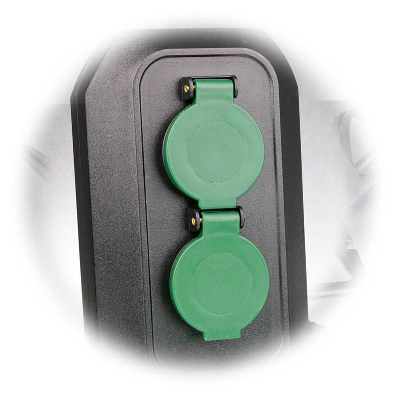Die Doppelsteckdose stellt eine innovative Lösung für den sicheren Einsatz von elektrischen Geräten in Feuchträumen oder geschützten Außenbereichen dar. Mit Klappdeckeln ausgestattet, bieten die Steckdosen einen zuverlässigen Schutz vor äußeren Einflüssen, wenn sie nicht in Gebrauch sind. Die Gartensteckdose ist vielseitig in der Montage, da sie sowohl auf festen Untergründen als auch mittels Erdspieß im Boden angebracht werden kann. Diese Flexibilität ermöglicht eine einfache Integration in verschiedene Umgebungen im Garten, auf Terrassen oder anderen Außenbereichen. Die Steckdose wird durch ein 2 Meter langes Gummikabel mit Schutzkontakt-Stecker an eine herkömmliche 230V-Steckdose angeschlossen. Anwendungen für diese spezielle Doppelsteckdose sind vielfältig, beispielsweise für die Stromversorgung von elektrischen Gartengeräten wie Rasenmähern, Heckenscheren oder elektrischen Grillgeräten. Auch für die Nutzung von Beleuchtungselementen im Außenbereich, wie Gartenleuchten oder fest installierten Lichterketten, bietet die Doppelsteckdose eine zuverlässige Stromquelle. Darüber hinaus kann sie für verschiedene Freizeitaktivitäten im Freien genutzt werden, sei es für den Betrieb von elektrischen Musikgeräten während eines Grillabends oder für die zuverlässige Stromversorgung von Outdoor-Heizstrahlern an kühlen Abenden.