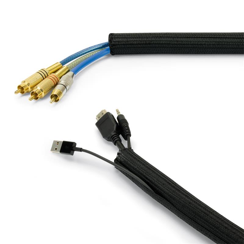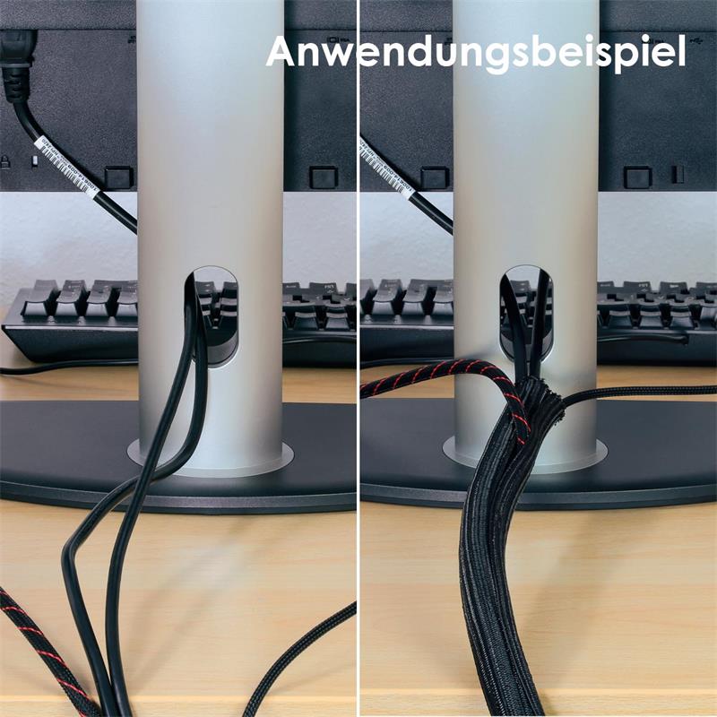 Der selbstschließende Kabelschlauch bietet eine einfache und effektive Lösung für ein aufgeräumtes Arbeitsumfeld, sei es zu Hause oder im Büro. Kabelbündel lassen sich mühelos in den flexiblen Kabelmantel einwickeln, der sich anschließend automatisch schließt. Dank der individuell kürzbaren Länge kann der Schlauch optimal an die jeweilige Situation angepasst werden und ist auch für Verlegungen um Ecken bestens geeignet. Aus hochwertigem, hitzebeständigem Polyester-Mono/Multifilament gefertigt, verhindert er Ausfransungen, die sich durch Erhitzen mit einem Feuerzeug versiegeln lassen. Mit einer Länge von 3 Metern und in verschiedenen Durchmessern erhältlich, eignet sich dieser Kabelmantel ideal für Bündel mit 10 bis 22 mm Durchmesser. Die flammhemmende Eigenschaft und die hohe Flexibilität des Materials machen ihn zu einem unverzichtbaren Kabelzubehör bei Temperaturen von -50 bis 150°C, mit einer Schmelztemperatur von 240°C.