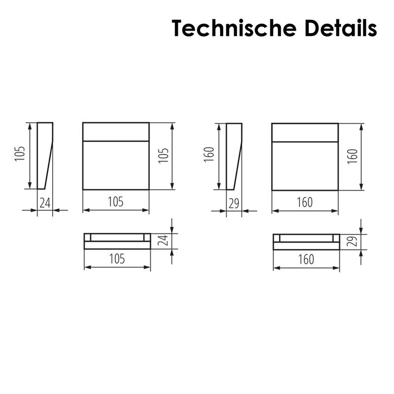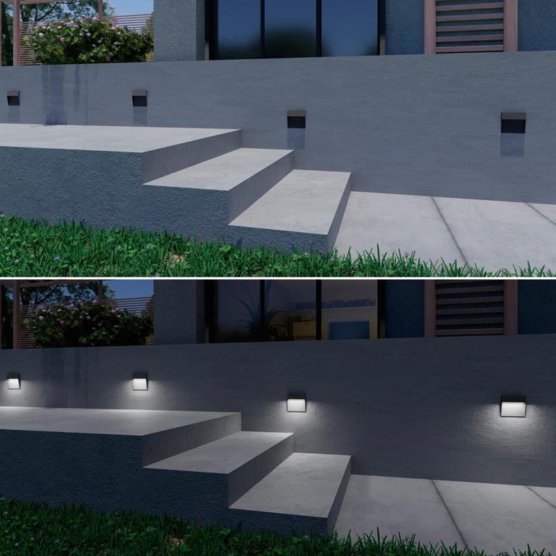 Die Leuchte ist in zwei Leistungsvarianten erhältlich – 4W für dezente Lichtakzente und 6,5W für eine intensivere Ausleuchtung. Die LED Wandaufbauleuchte "DULI" sorgt für Orientierung und Sicherheit an Treppenaufgängen, setzt stilvolle Lichtakzente an Hausfassaden oder Mauern, beleuchtet Wege und Terrassenzonen und kann im Innenbereich zur dezenten Wand- oder Flurbeleuchtung eingesetzt werden.