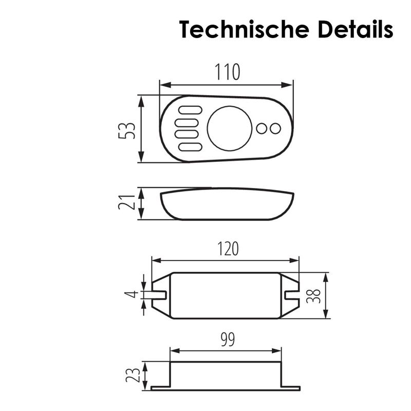 Der LED-Controller besteht aus robustem Kunststoff, ist in Weiß gehalten und bietet eine hohe Funktionalität bei einfacher Handhabung. Die Abmessungen des Empfängers betragen ca. 120x38x23mm, während die Fernbedienung kompakte 110x53x21mm misst. Die Produkte sind gemäß Schutzklasse IP20 für den Innenbereich geeignet und bieten eine zuverlässige und flexible Lösung für Ihre Raumbeleuchtung.