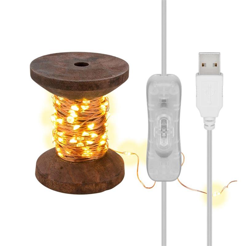 LED Draht-Lichterkette (um die Spule gewickelt) zur individuellen Gestaltung, warmweiße LEDs, 3m langes USB-Anschlusskabel mit Ein-/Ausschalter, für Innenbereich