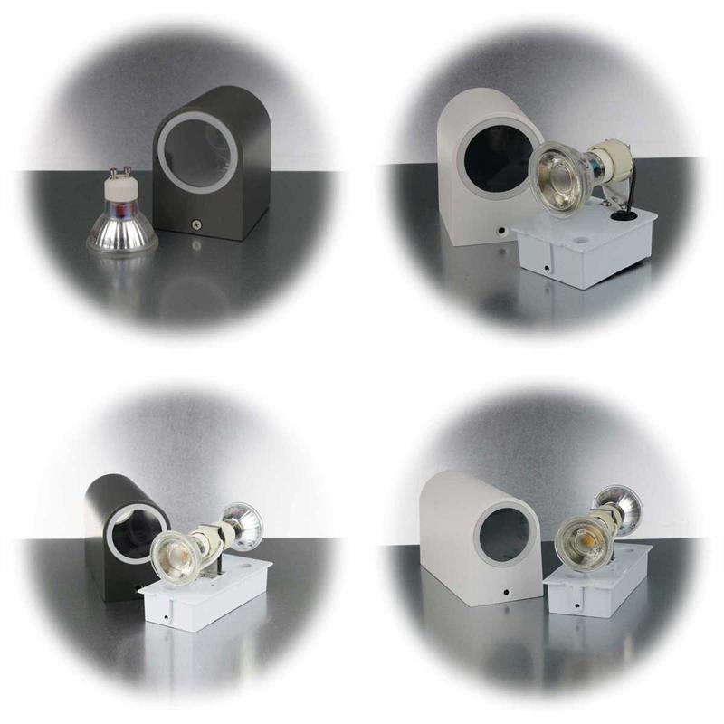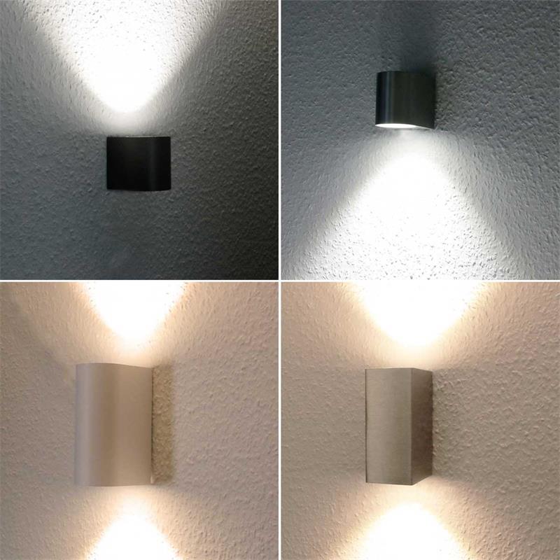 Die Leuchte ist in verschiedenen Varianten verfügbar: wahlweise mit 1 oder 2 GU10 COB LEDs, jeweils mit 3W oder 5W Leistung, in den Leuchtfarben warmweiß für gemütliche Akzente oder daylight für klare, helle Ausleuchtung. Durch die austauschbaren GU10 Leuchtmittel lässt sich die Lichtfarbe flexibel anpassen, ohne die Leuchte austauschen zu müssen. Ergänzend können weitere Typen der Serie kombiniert werden, um individuelle Beleuchtungskonzepte zu realisieren und gleichzeitig Energie zu sparen. Typische Anwendungsbereiche sind die Beleuchtung von Hauseingängen, Garagenzufahrten oder Wegen, dekorative Akzentbeleuchtung an Fassaden und Mauern sowie die effektvolle Ausleuchtung von Terrassen und Balkonen. Die LED Wand-Außenleuchte überzeugt durch ihre Energieeffizienz, lange Lebensdauer und die Möglichkeit, Licht gezielt zu lenken, wodurch sie moderne Architektur stilsicher in Szene setzt.