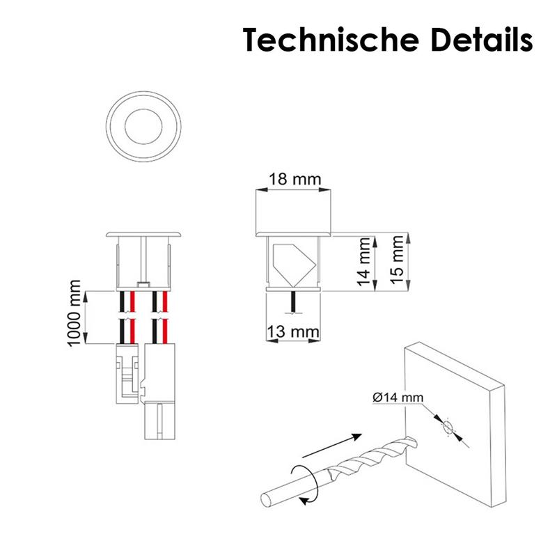 - Einbaumaß: ca. 13x14mm (ØxH)