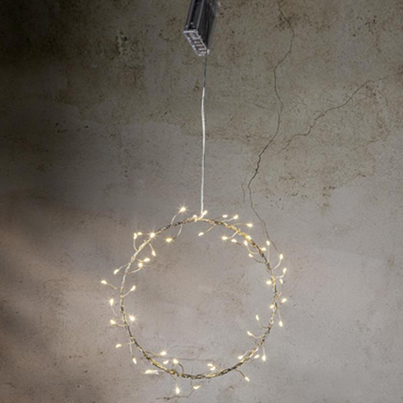 Verwandeln Sie Ihr Zuhause in eine behagliche Winteroase mit diesem edlen Metallkranz, der von 50 warmweiß strahlenden LED-Lichtpunkten effektvoll beleuchtet wird. Die zarten LEDs sind gleichmäßig auf dem filigranen Kranz verteilt und erzeugen ein sanftes, funkelndes Leuchten, das eine ruhige und festliche Stimmung verbreitet. Ob als stimmungsvolle Dekoration für die Advents- und Weihnachtszeit oder als Lichtakzent in den frühen dunklen Monaten – der Kranz schafft überall eine warme, einladende Atmosphäre.