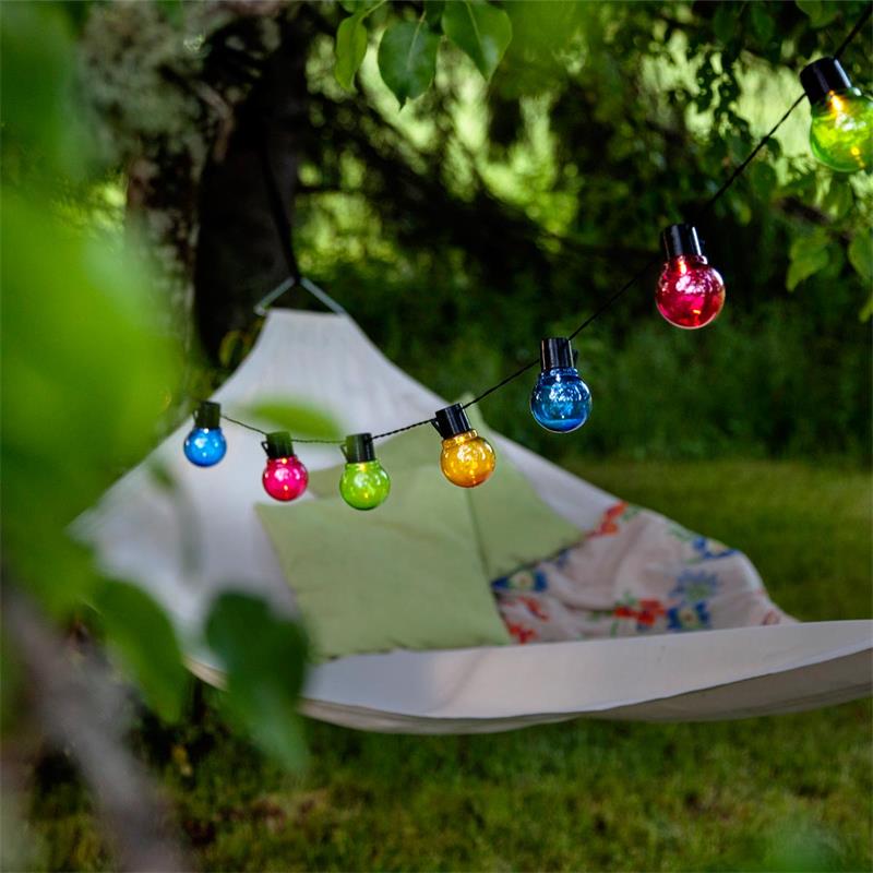 - 1x Solar Party-Lichterkette, 10 LED Birnen bunt