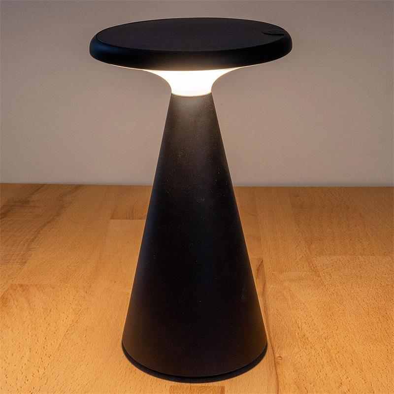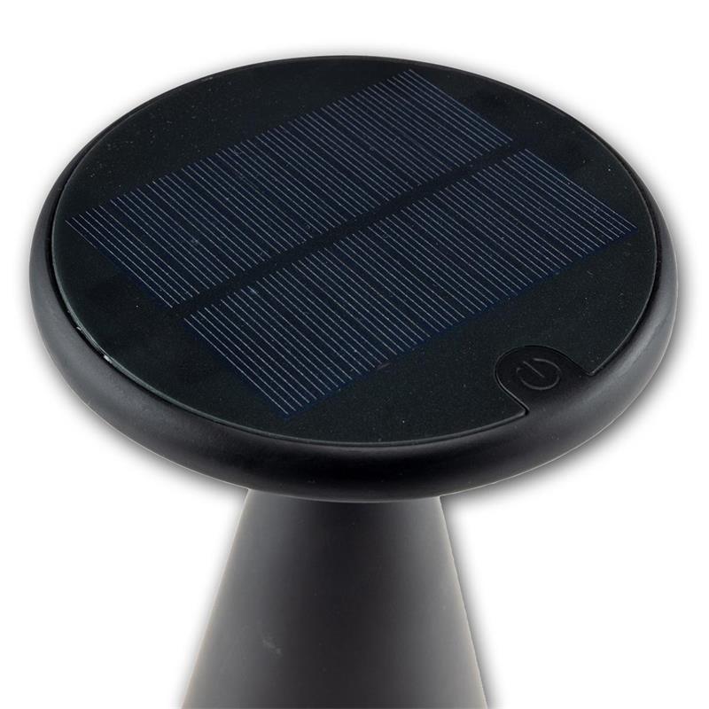 Akku-Tischleuchte mit Touch-Schalter, warmweisses Licht, stufenlos dimmbar, aufladen über Solar Panel oder USB-C, für Innen- und Außenbereich