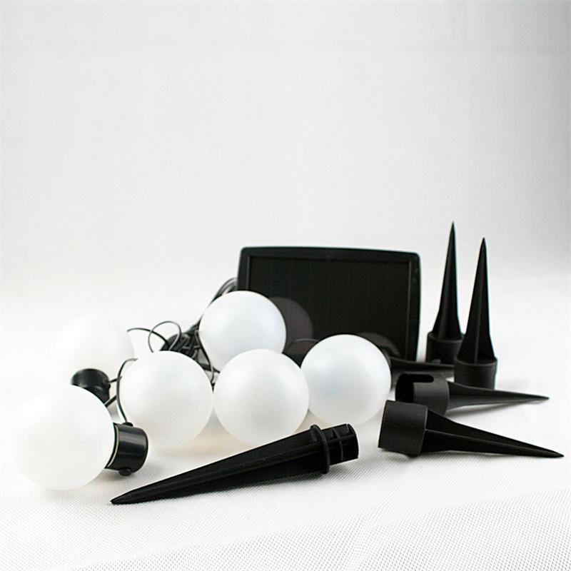 LED Lichterkette mit 6 Leuchtelementen, Länge von 7m mit Dämmerungssensor, flexibel einsetzbar: hängend oder mit Erdspieß im Boden, wetterfest nach IP44