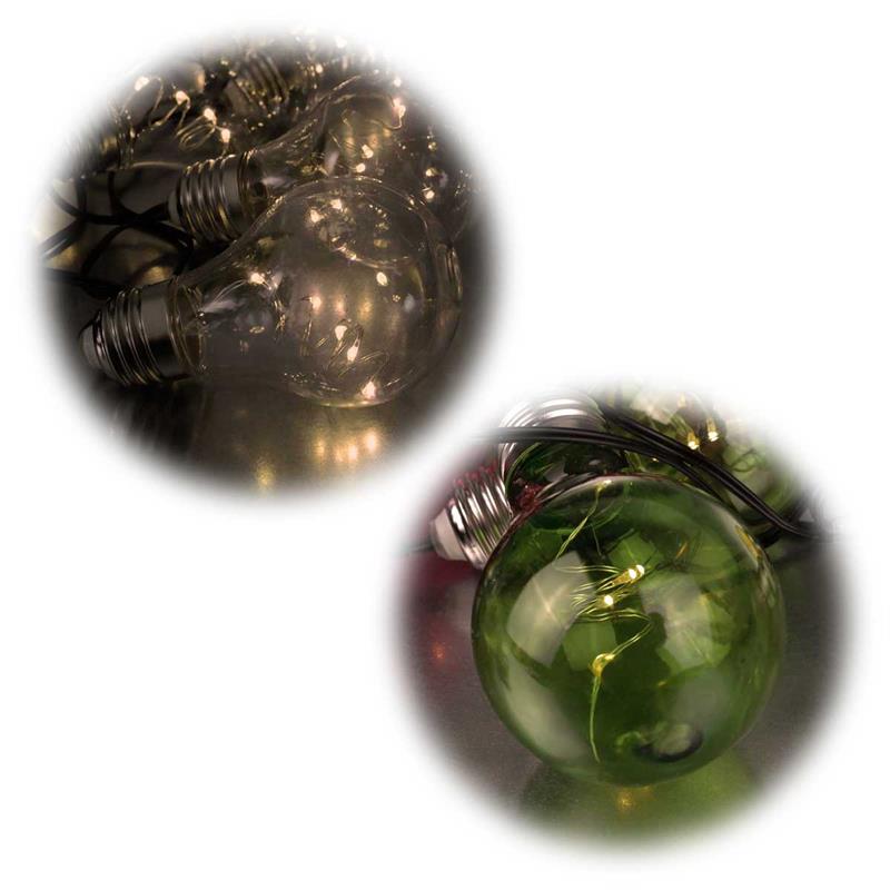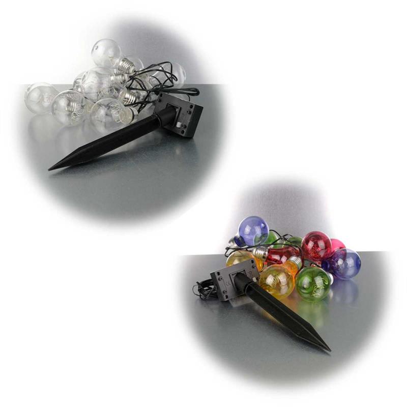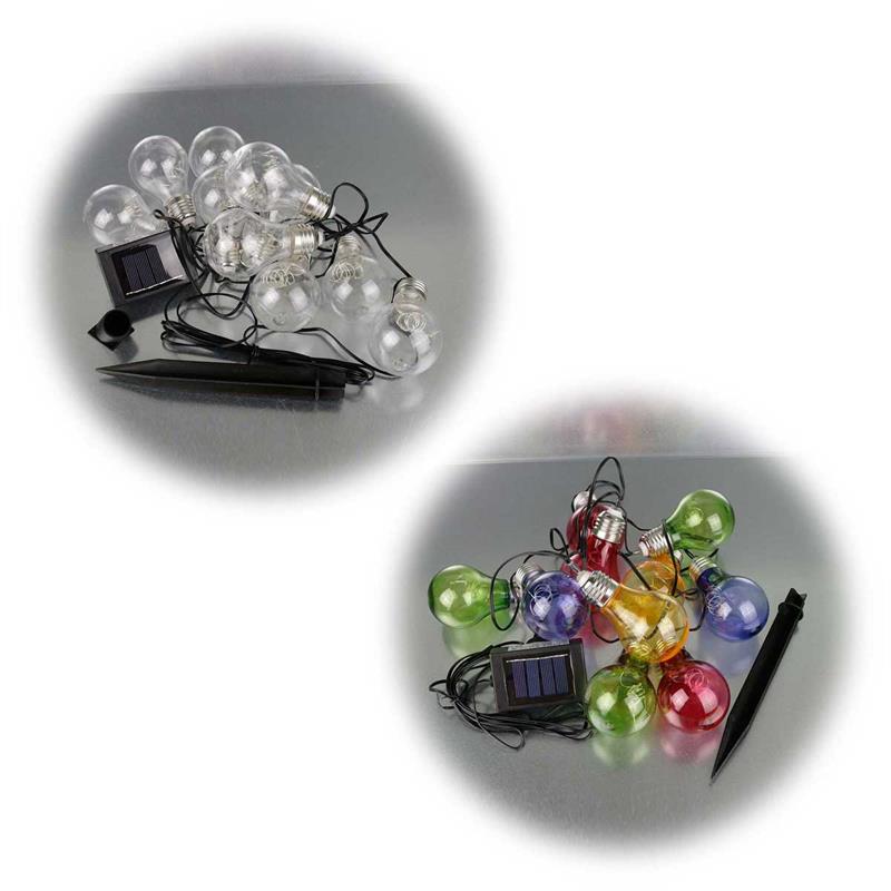 Lichterkette mit 10 LED-Glühbirnen, bruchsicher aus Kunststoff, wahlweise warmweiß oder bunt, automatische Tag-/Nacht-Schaltung, Solarbetrieben