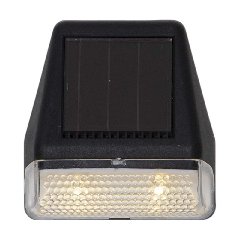 Die LED Solar Wandleuchte „Wall Mini“ im 3er Set kombiniert stilvolles Design mit effizienter Solartechnologie. Das kompakte Format und das schlichte, schwarze Kunststoffgehäuse machen die Wandleuchten zu einer dezenten und zugleich wirkungsvollen Außenbeleuchtung. Dank integriertem Solarpanel und Akku ist kein Stromanschluss erforderlich – die Energie wird tagsüber durch Sonnenlicht gespeichert und bei Dämmerung automatisch in ein angenehmes, warmweißes Licht umgewandelt. Der integrierte Tag-/Nachtsensor sorgt für eine zuverlässige Lichtsteuerung, während die Schutzklasse IP44 einen wetterfesten Einsatz im Außenbereich gewährleistet. Mit einer Leuchtdauer von bis zu 6 Stunden und einer Lebensdauer von rund 10.000 Stunden bieten die Lampen eine langlebige, wartungsfreie Beleuchtungslösung.