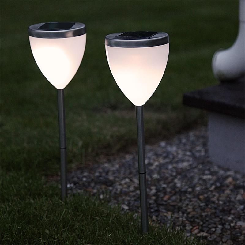 LED Wegeleuchte mit integrierten Solarpanel, Lichtfarbe warmweiß, eingebauter Dämmerungssensor, Erdspieß für optimalen Halt im Boden, 2er Set