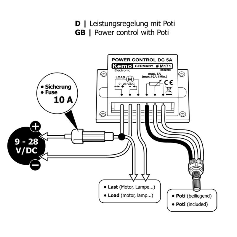 KEMO PWM-Leistungsregler, Betriebsspannung: 9-28V/DC, Regelbereich: ca. 5 bis 95%, Frequenz: zwischen 10 bis 20kHz