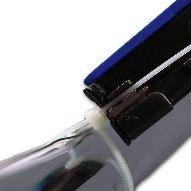 Mit einer Kabelbinderzange lassen sich Kabelbinder optimal spannen, binden und gratfrei schneiden. Die voreinstellbare Bindekraft ermöglicht eine optimale Fixierung der Kabelbinder, ohne dass sie reißen. Nach dem Verzurren werden die Kabelbinderenden sauber abgeschnitten, was Schnitte bei der Montage verhindert. Diese Zange erlaubt auch das mühelose Verbinden von Kabelsträngen an weniger zugänglichen Stellen. Durch eine leichte Drehbewegung wird das überstehende Ende automatisch abgeschnitten. Sie besteht aus Kunststoff und Metall und ist für Kabelbinder von 2,4-4,8mm geeignet.