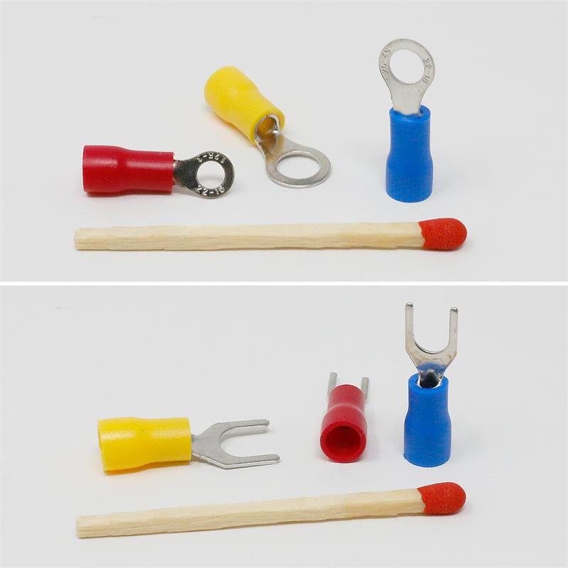 - Gabelkabelschuhe, Ringkabelschuhe, Aderendhülsen mit isolierten Schäfte