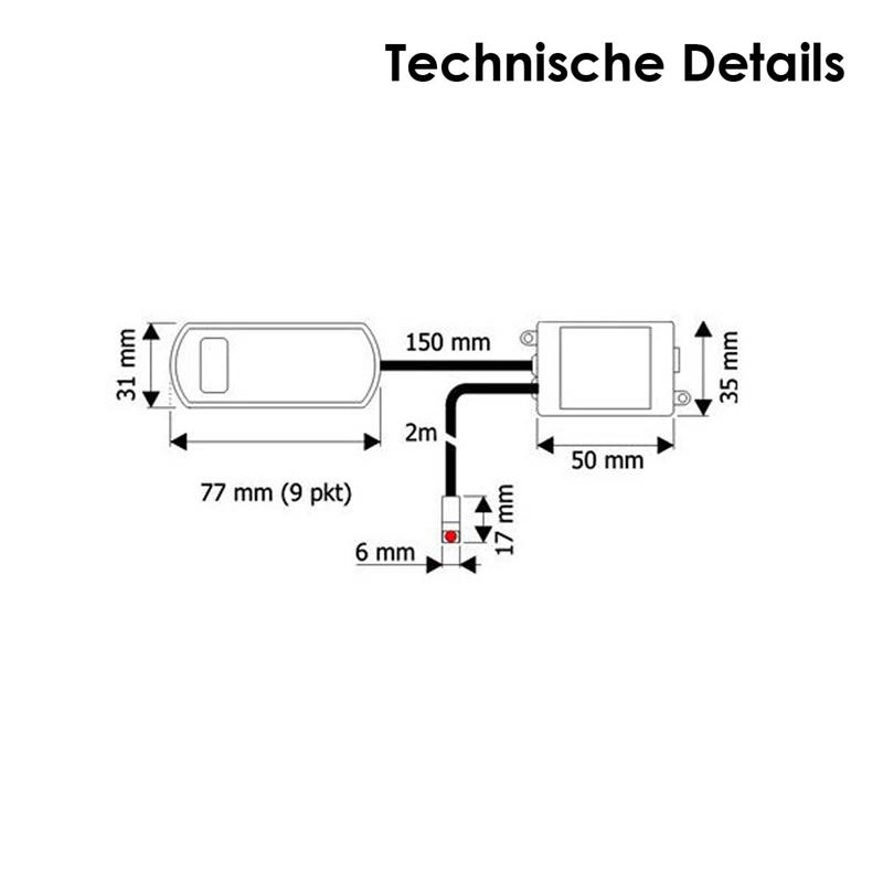 - Maße Fernbedienung: ca. 85x52x7mm (LxBxH)