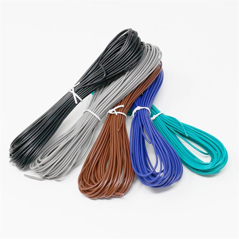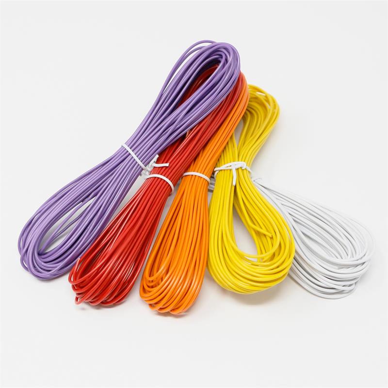 10 verschieden farbige Kupferlitzen, Aufbau: 11x0,2mm Kupferdraht, Leiterquerschnitt: 0,34mm², PE Isolierung