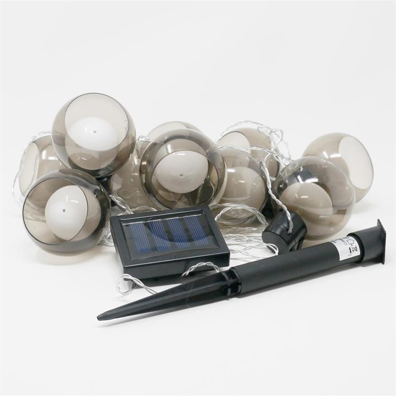 Die Solar LED Lichterkette "SMOKY" vereint stilvolles Design mit umweltfreundlicher Energie und schafft stimmungsvolle Akzente auf Balkon, Terrasse oder im Garten. Zehn warmweiße LEDs, eingebettet in transparente, rauchige Glühbirnen aus Kunststoff, sorgen für eine sanfte, einladende Beleuchtung. Mit einem Abstand von ca. 30cm zwischen den Leuchten und einer Gesamtlänge von 4,7m – davon 2,7m beleuchtet – lässt sich die Lichterkette ideal entlang von Geländern, Zäunen, Pergolen oder Pflanzen dekorativ platzieren. Das integrierte Solarpanel mit praktischem Erdspieß lädt die Akkus tagsüber umweltfreundlich auf, sodass die LEDs bei Einbruch der Dämmerung automatisch zu leuchten beginnen. Ein Ein-/Ausschalter am Solarpanel ermöglicht zusätzlich die manuelle Steuerung.