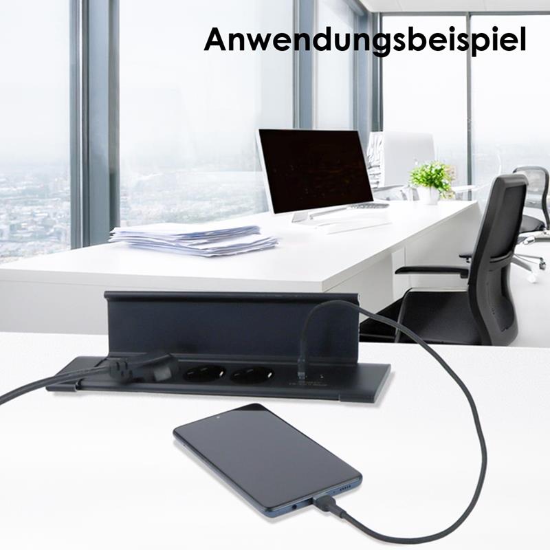 - 1x Tisch-Einbausteckdose "FLATBOX", 3-fach + 2x USB, schwarz