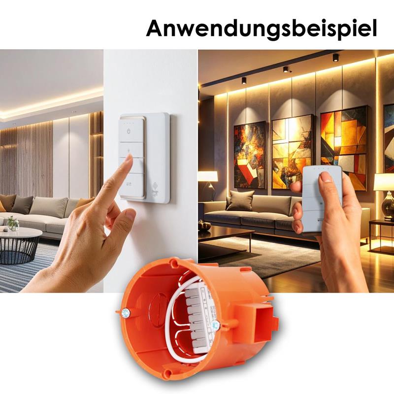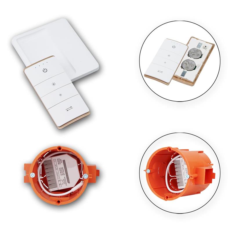 2-teiliges Set mit Fernbedienung & LED-Controller, vorprogrammiert, Controller passend für Unterputz-Dosen, Wandhalterung für Fernbedienung, für Innenbereich