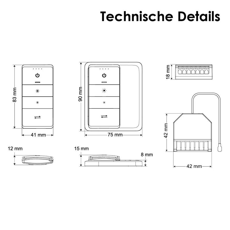 - Maße Fernbedienung: ca. 41x83x12mm (LxBxH)